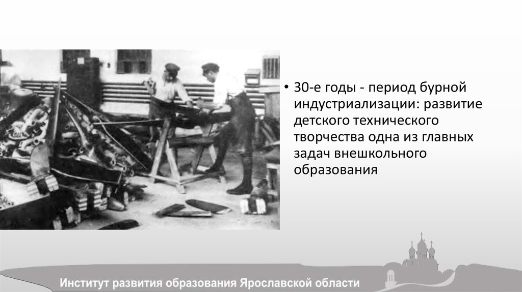 Конец ХIХ века при народных домах - первые клубы для детей (прообразы станций юных техников и натуралистов.
