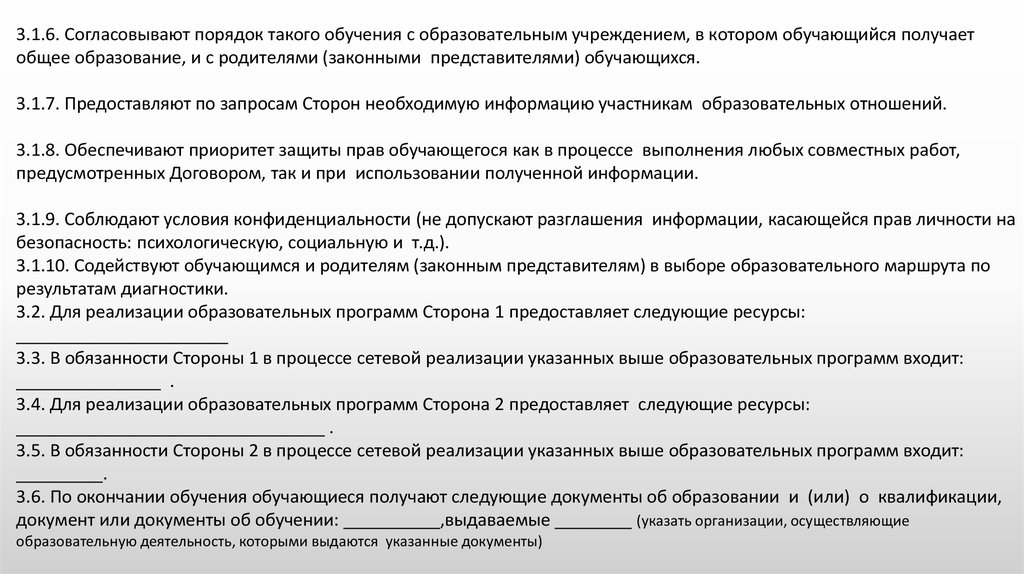 3.3. В обязанности Стороны 1 в процессе сетевой реализации указанных выше образовательных программ входит: