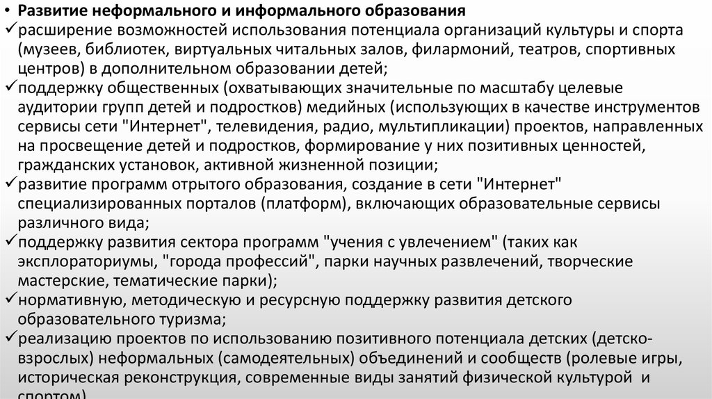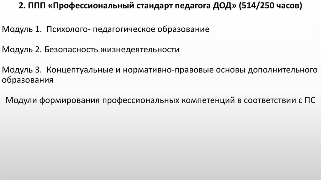- Развитие системы дополнительного образования;- Профессиональный стандарт «Педагог дополнительного образования