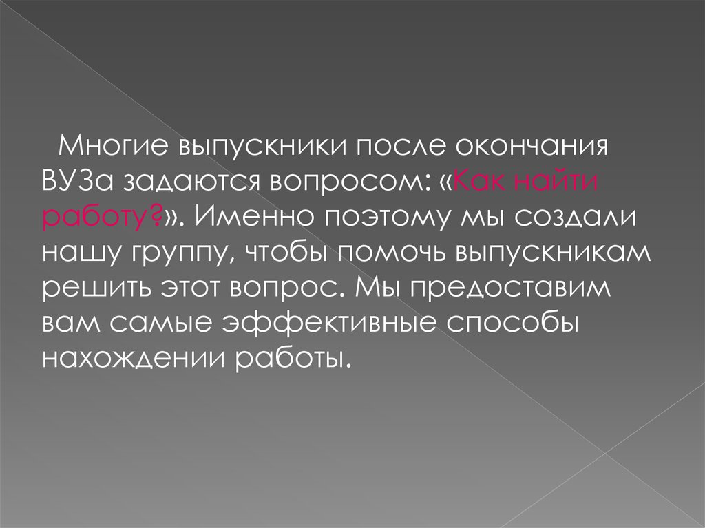 Многие выпускники после окончанияВУЗа задаются вопросом: «Как найти