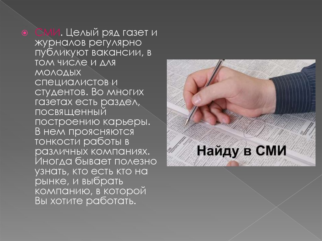 Интернет. На сайтах можно нетолько найти вакансии, но и