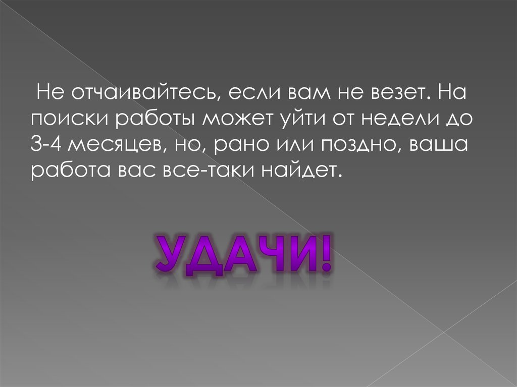 Не отчаивайтесь, если вам не везет. Напоиски работы может уйти от недели до