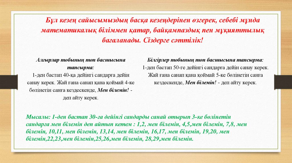 Жай ғана санап қана қоймай 5-ке бөлінетін санға