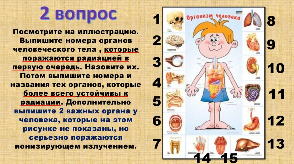 Посмотрите на иллюстрацию.Выпишите номера органов