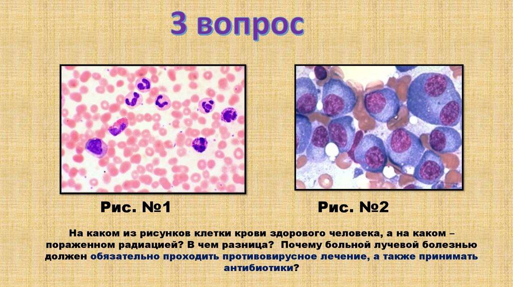 На каком из рисунков клетки крови здорового человека, а на каком –
