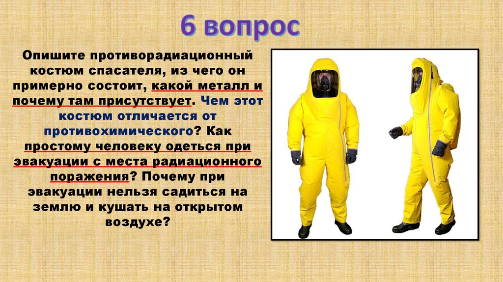 Опишите противорадиационныйкостюм спасателя, из чего он
