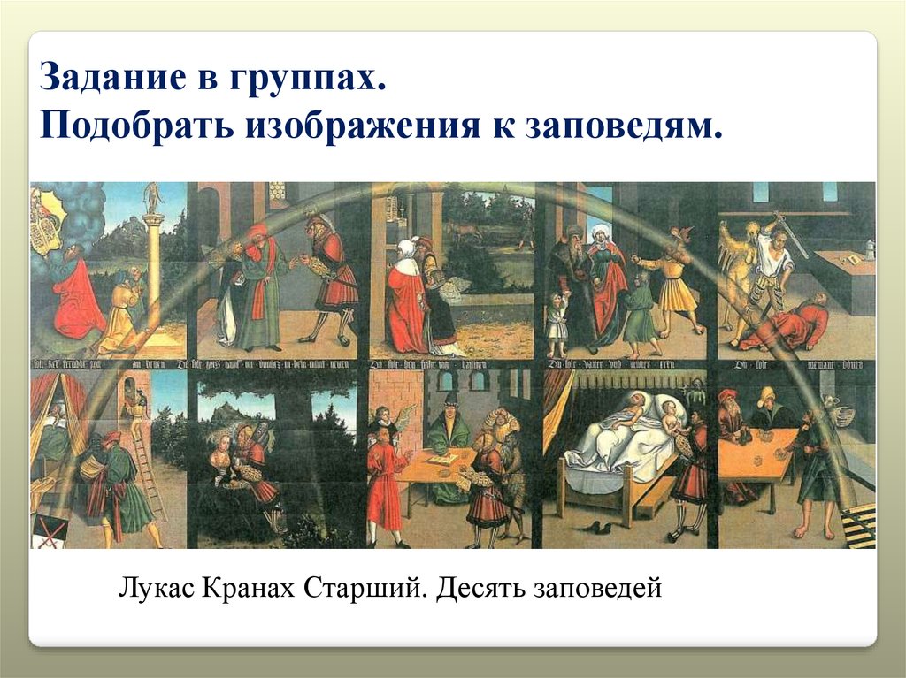 Каждой группе выдаётся по однойкартине на евангельские сюжеты.