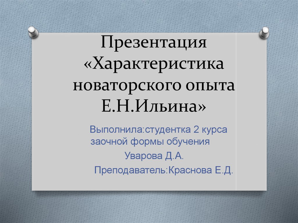 1. Презентация «Характеристика новаторского опыта Е.Н.Ильина»