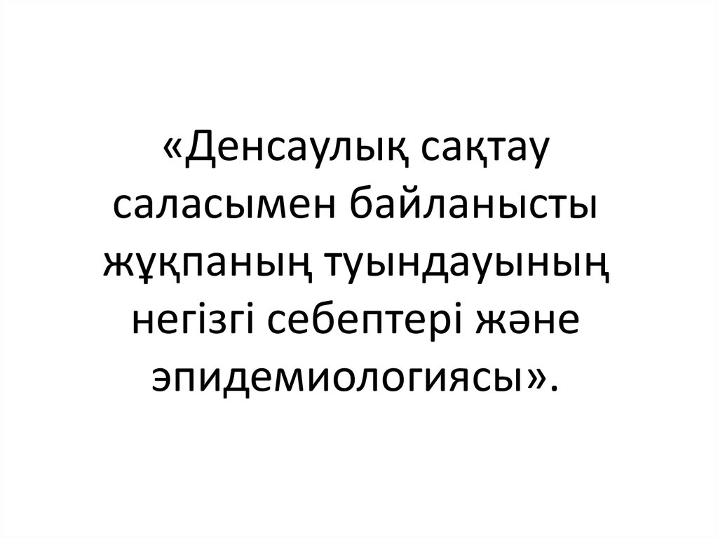 1. «Денсаулық сақтау саласымен байланысты жұқпаның туындауының негізгі себептері және эпидемиологиясы».