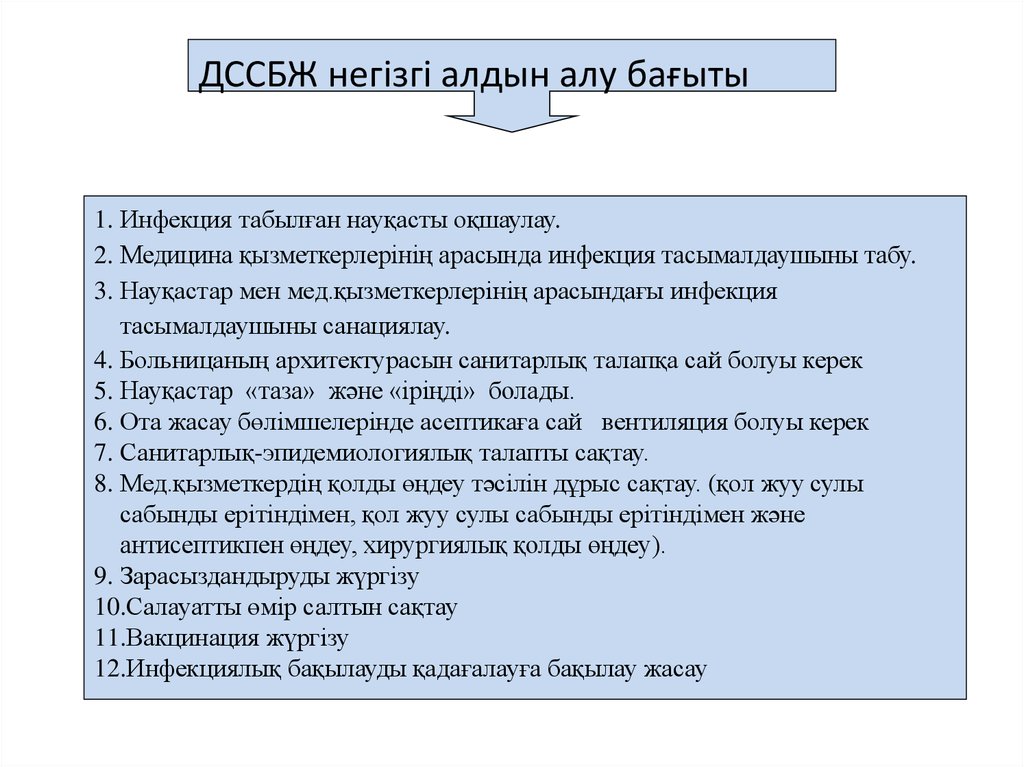 ДССБЖ негізгі алдын алу бағыты1. Инфекция табылған науқасты оқшаулау.