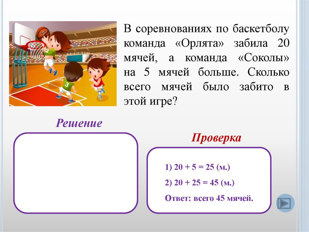 1) 12 – 5 = 7 (м.) – футбольные.