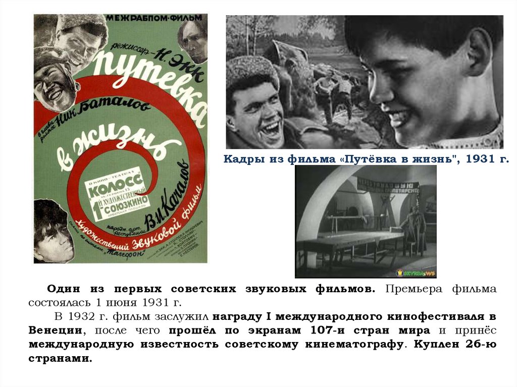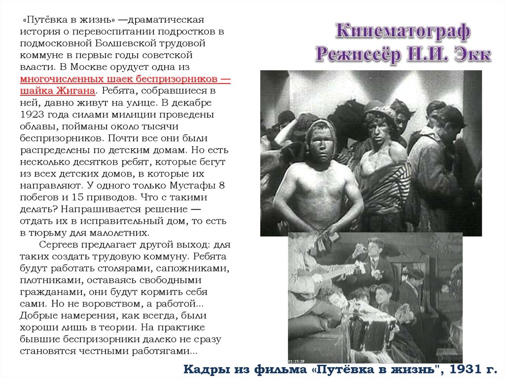 Кадры из фильма «Путёвка в жизнь", 1931 г.Один из первых советских звуковых фильмов. Премьера фильма