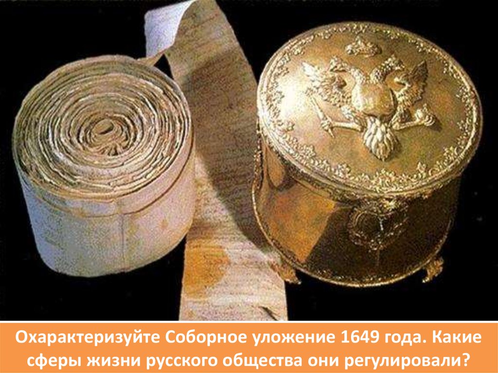 Охарактеризуйте Соборное уложение 1649 года. Какиесферы жизни русского общества они регулировали?