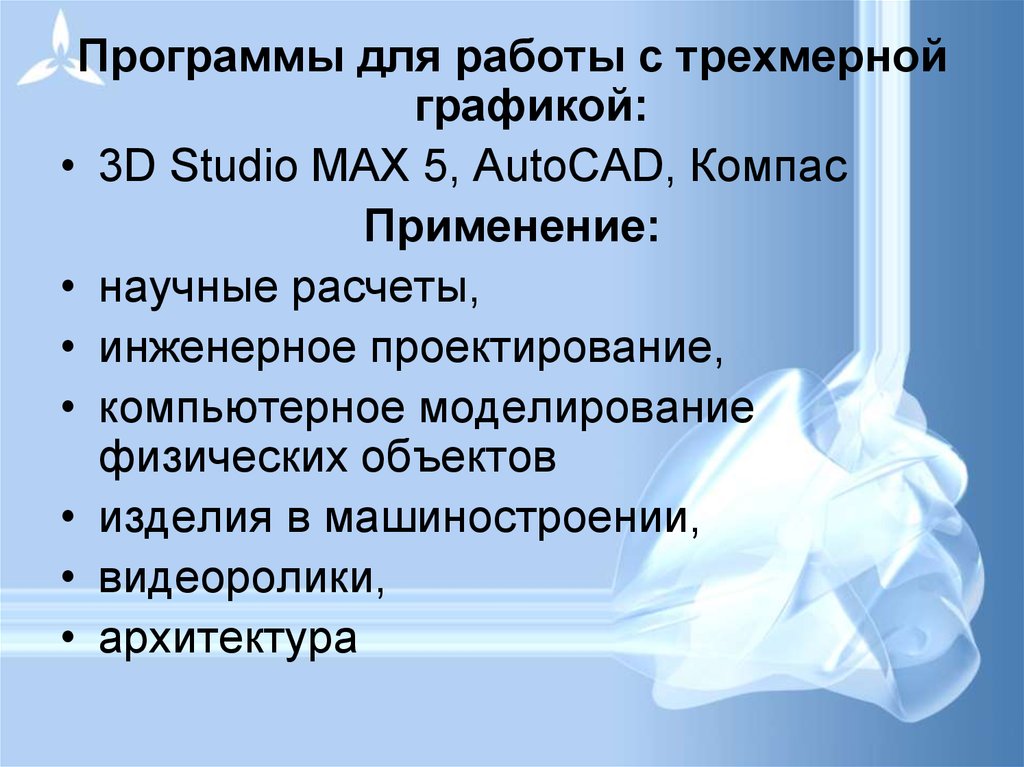 источников освещения в созданной сцене. Графические 3d-редакторы