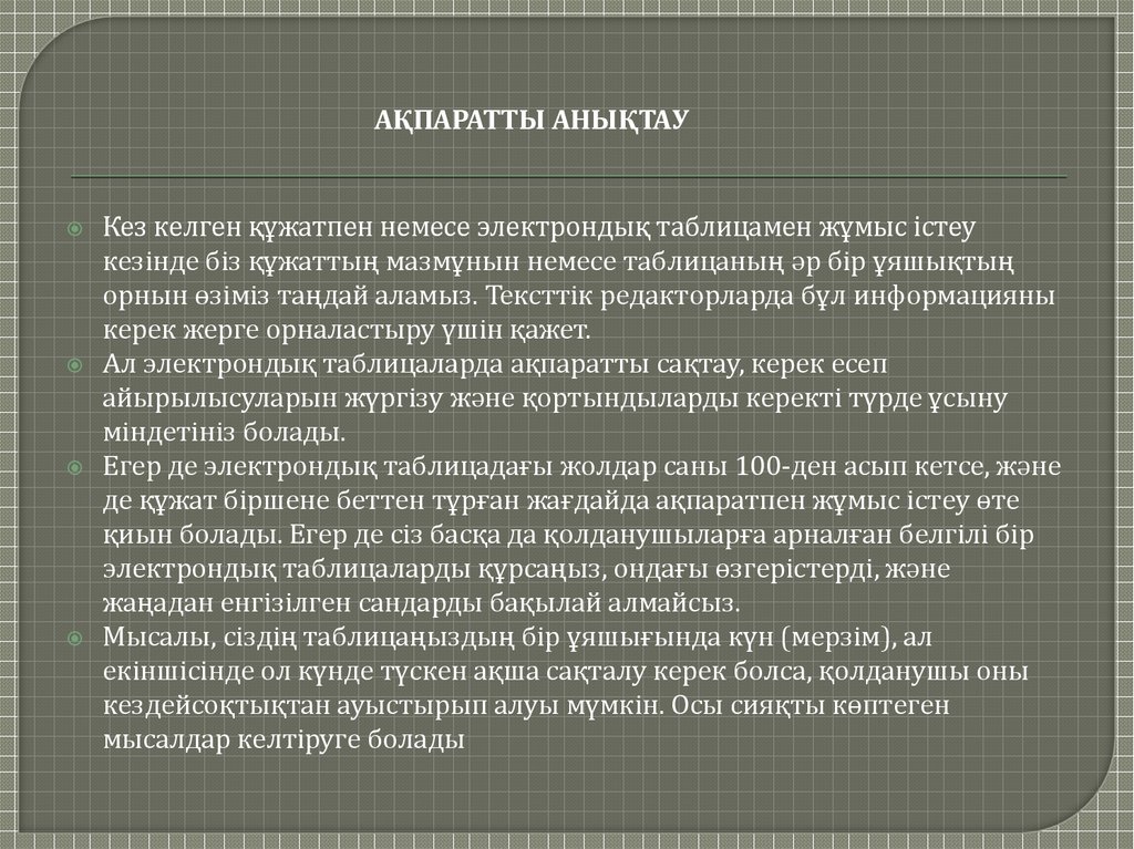таблицадан бізге керекті информацияны ғана белгілей аламыз.
