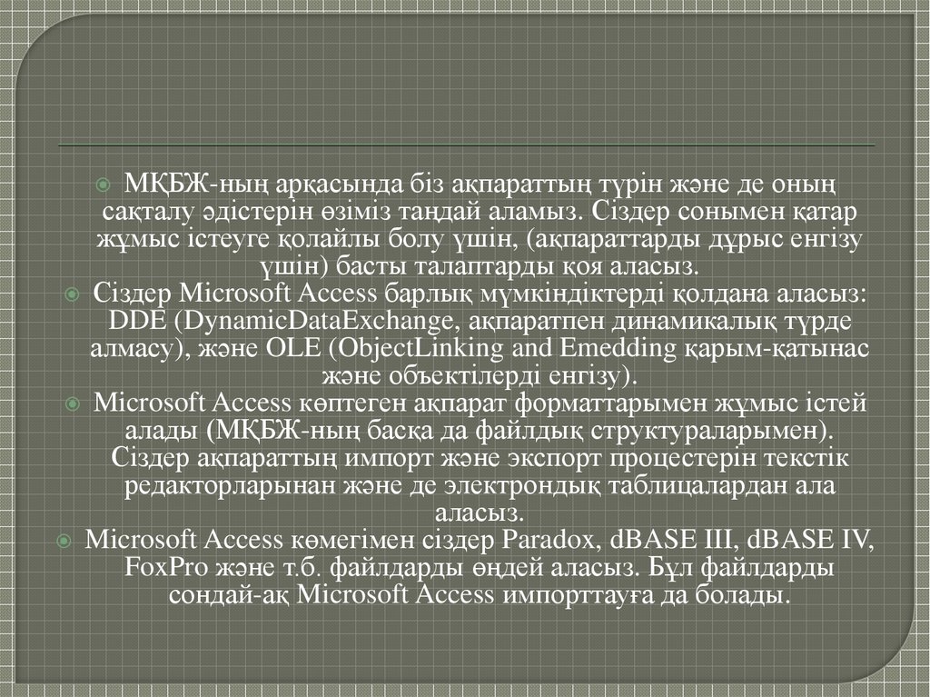 Сіздер Microsoft Access барлық мүмкіндіктерді қолдана аласыз:
