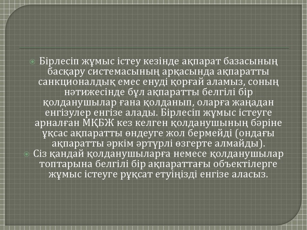 Бірлесіп жұмыс істеу кезінде ақпарат базасыныңбасқару системасының арқасында ақпаратты