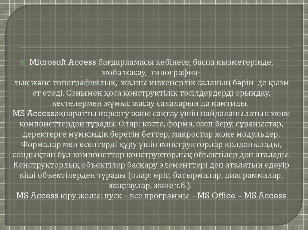 Microsoft Access бағдарламасы ол – кез-келген фирма,мекеме, шағын кәсіпкерлік шаруа-шылықтар бір-бірі