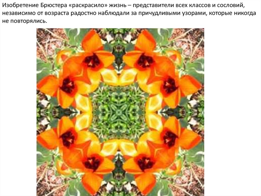 Изобретение Брюстера «раскрасило» жизнь – представители всех классов и сословий,независимо от возраста радостно наблюдали за причудливыми узорами, которые никогда