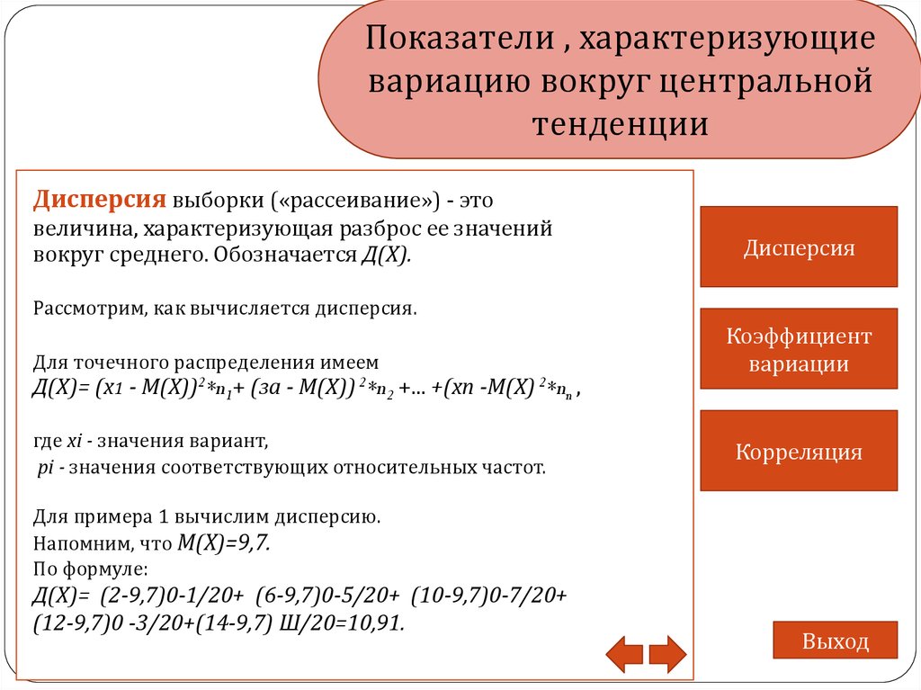 Д(Х)= (2-9,7)0-1/20+ (6-9,7)0-5/20+ (10-9,7)0-7/20+