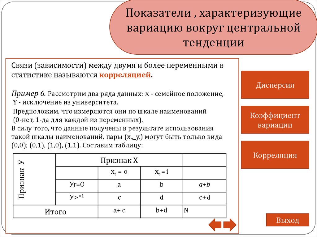 Пример 6. Рассмотрим два ряда данных: X - семейное положение,