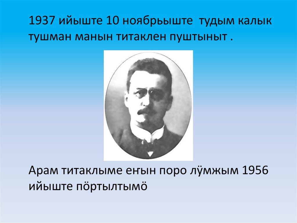 1937 ийыште 10 ноябрьыште тудым калыктушман манын титаклен пуштыныт .