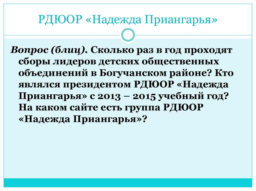 1. РДЮОР «Надежда Приангарья»