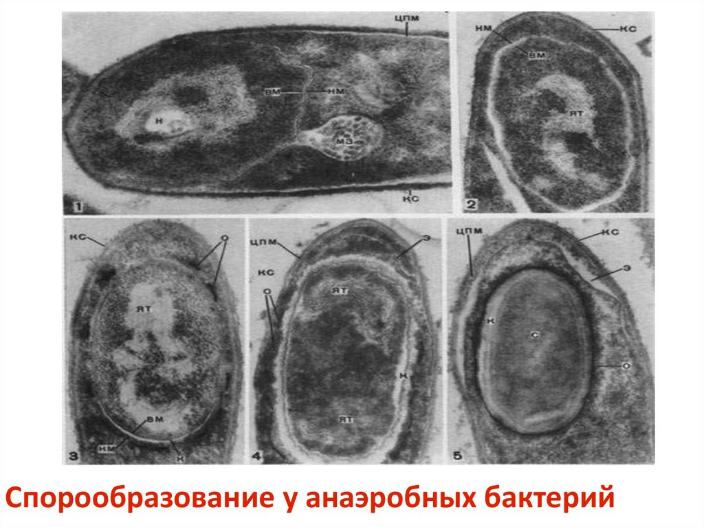 27. Строение оболочки спор у различных видов анаэробных бактерий: Э – экзоспориум, О – оболочка споры