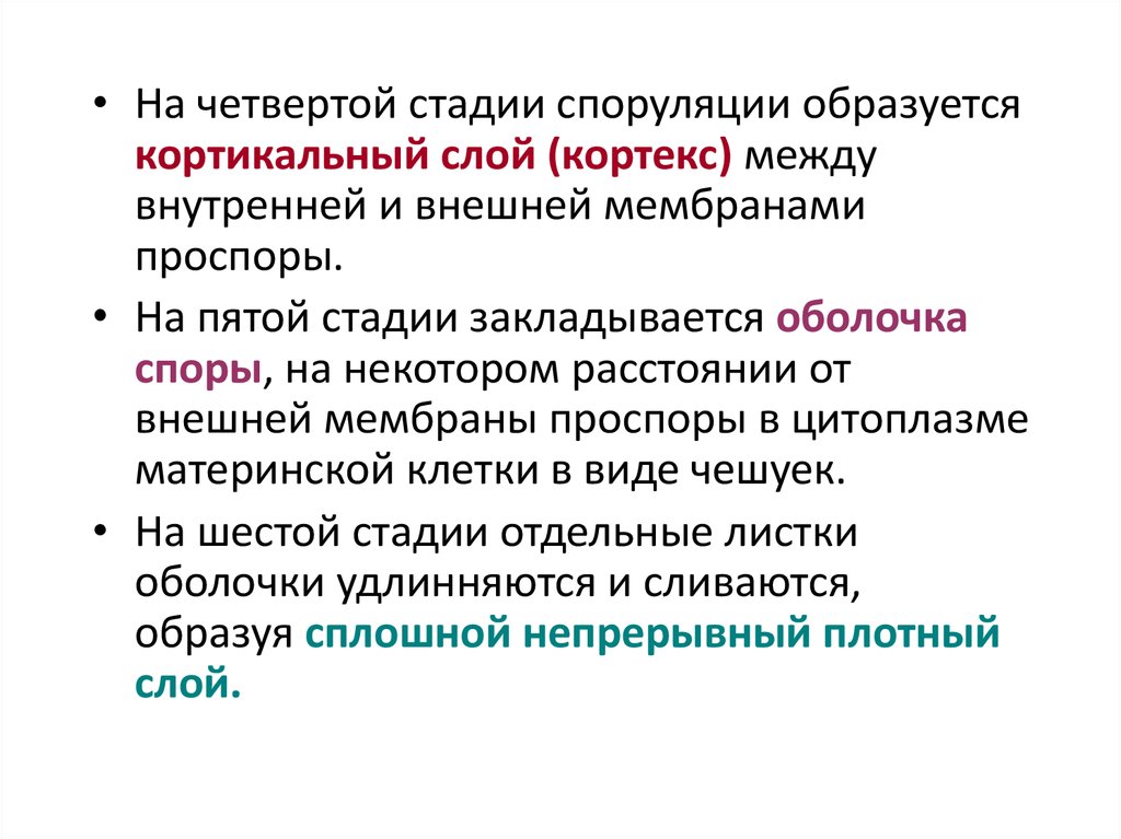 • На четвертой стадии споруляции образуетсякортикальный слой (кортекс) между