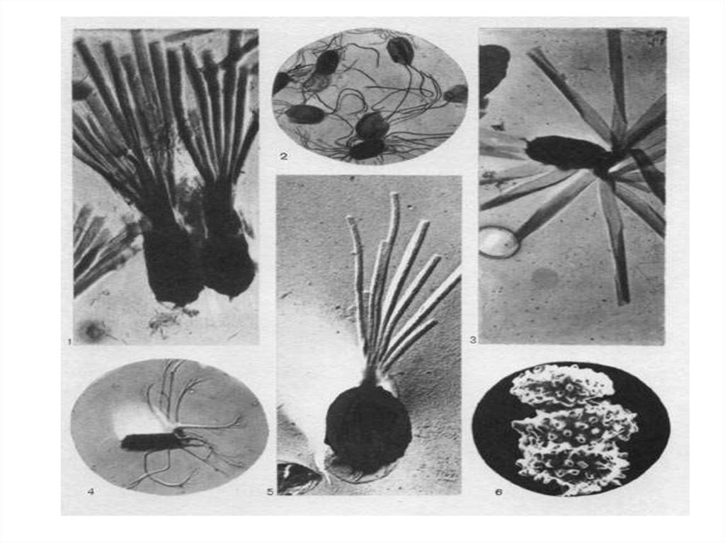 8. Созревание спор у Cl. sporopenitum. Форма спор цилиндрическая. Увел. X 3200.