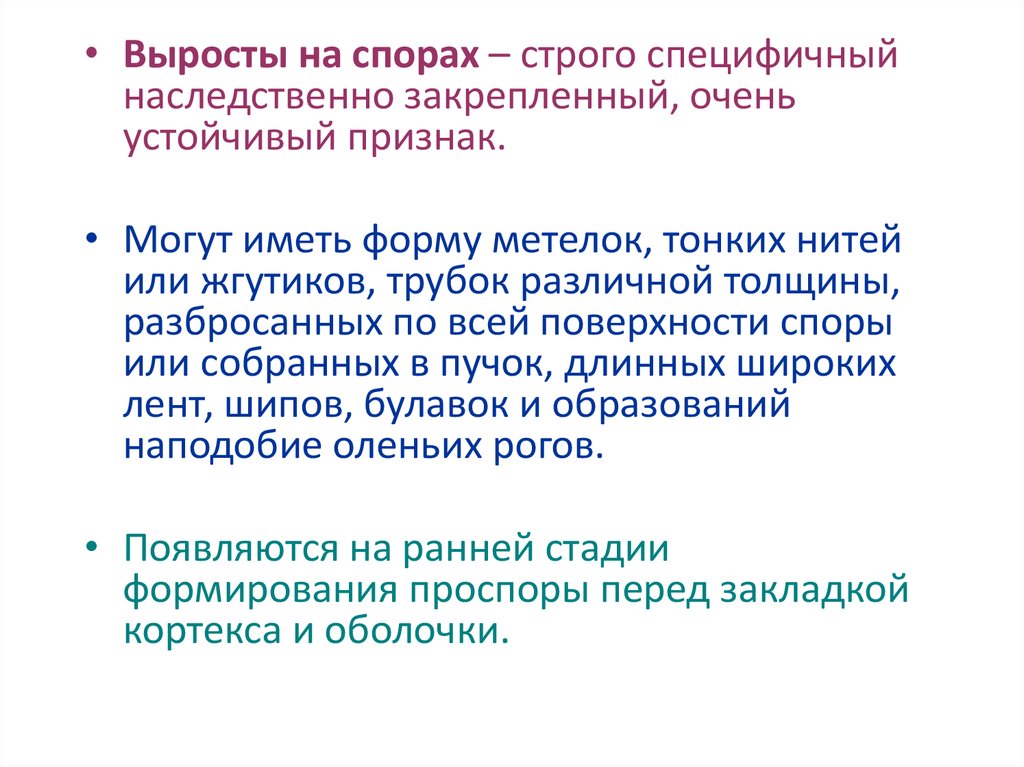 • Выросты на спорах – строго специфичныйнаследственно закрепленный, очень