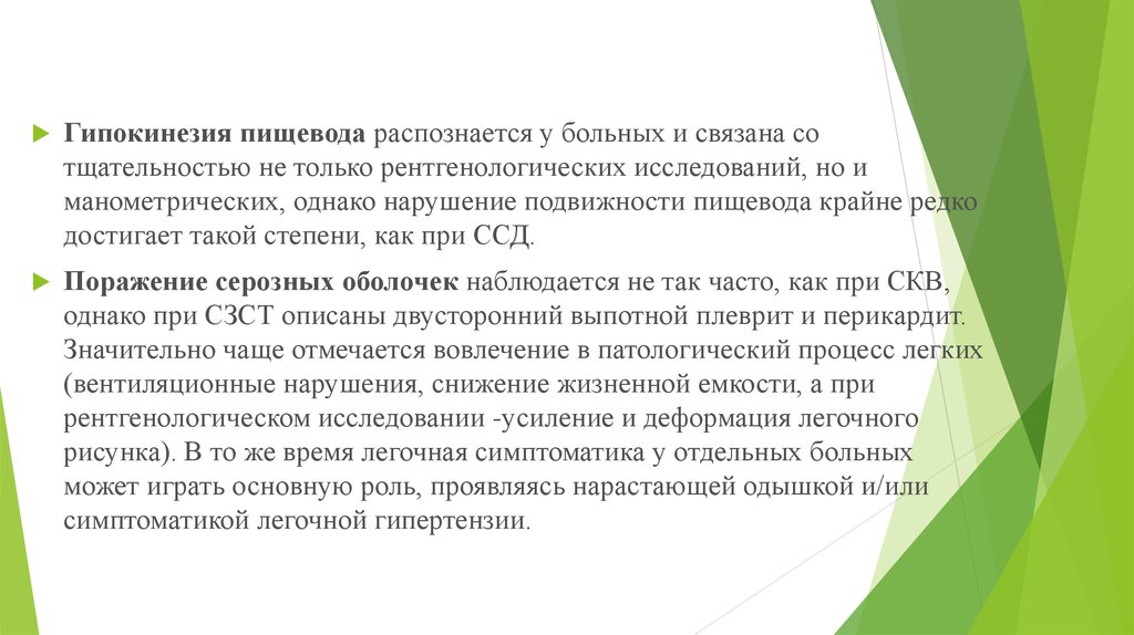 Поражение серозных оболочек наблюдается не так часто, как при СКВ,