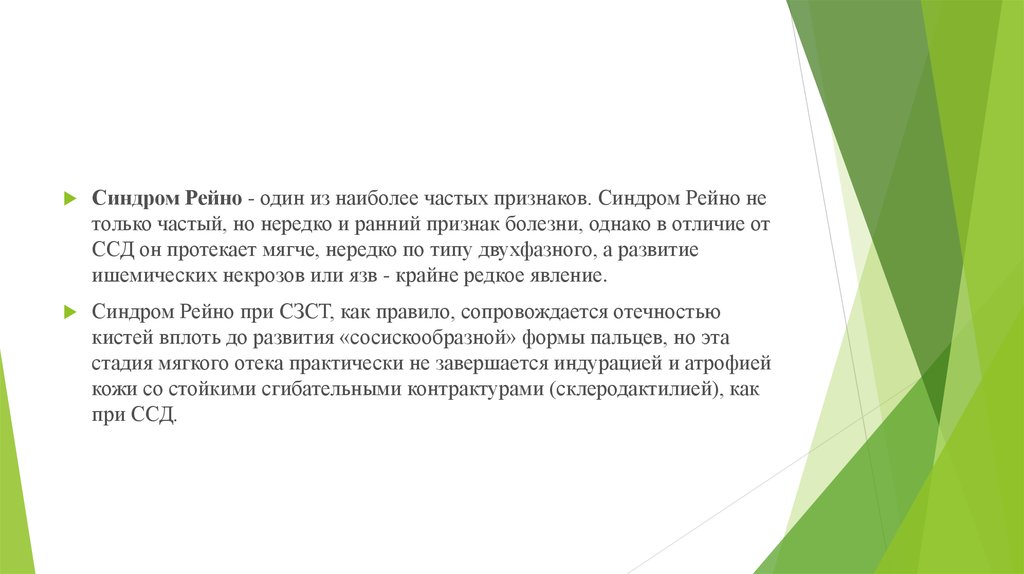 Синдром Рейно при СЗСТ, как правило, сопровождается отечностью