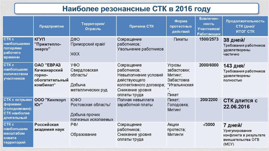 1. Социально-трудовые конфликты в Российской Федерации 2016 год