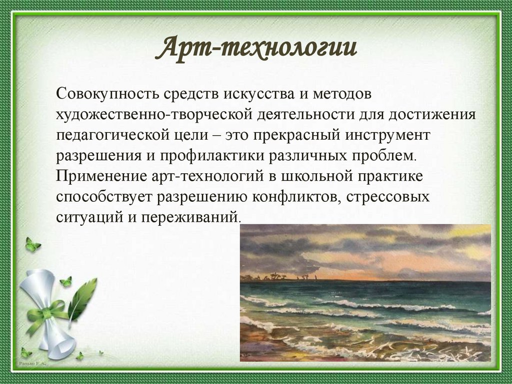 Арт-технологии. Совокупность средств искусства и методов художественно-творческой деятельности для достижения