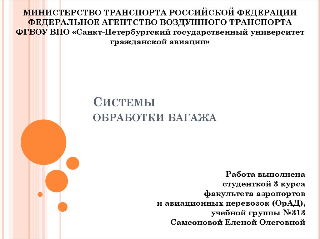 МИНИСТЕРСТВО ТРАНСПОРТА РОССИЙСКОЙ ФЕДЕРАЦИИФЕДЕРАЛЬНОЕ АГЕНТСТВО ВОЗДУШНОГО ТРАНСПОРТА