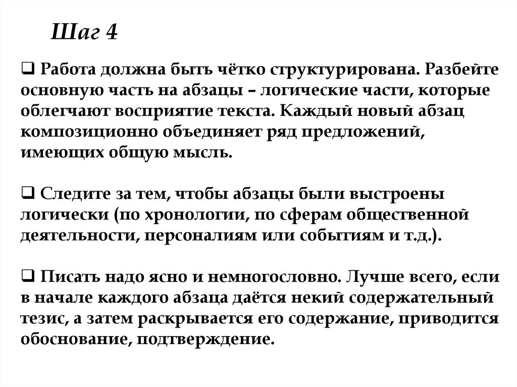 Шаг 4Работа должна быть чётко структурирована. Разбейте