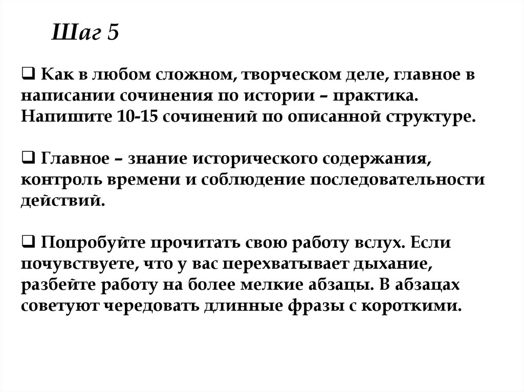 Историческое сочинение. Пять шагов к успеху: рекомендации для учащихся