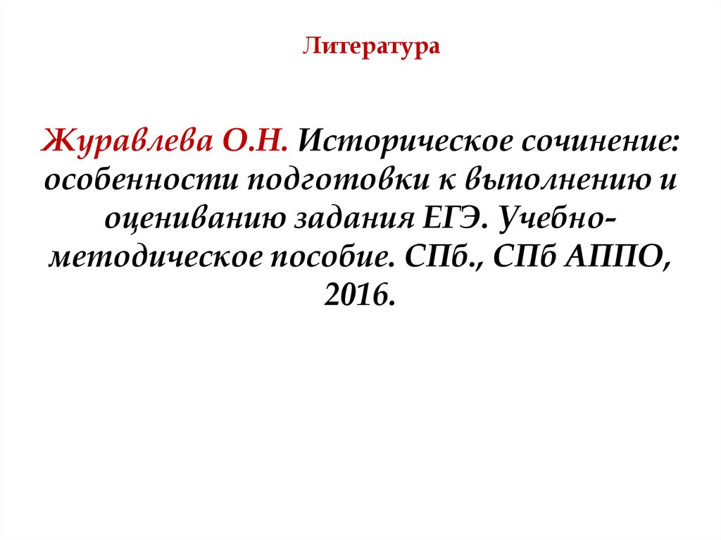 ЛитератураЖуравлева О.Н. Историческое сочинение: