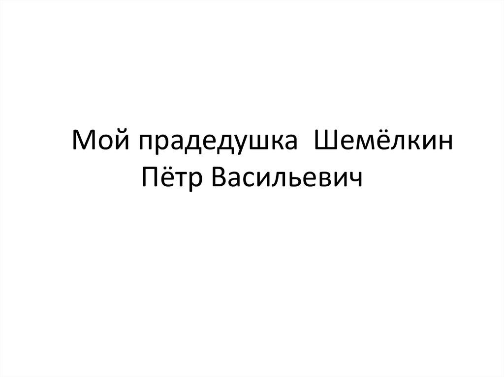 1. Мой прадедушка Шемёлкин Пётр Васильевич