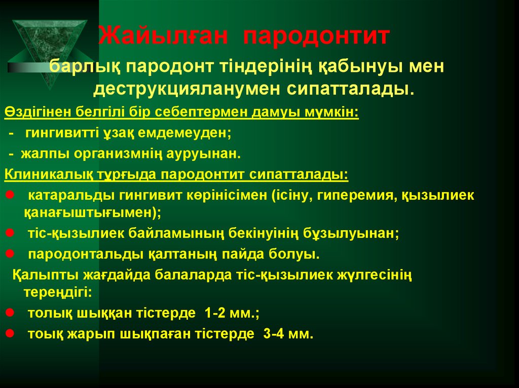 жергілікті және жайылған жасөспірімдікпародонтитпен ауырған тұлғаларда, сонымен