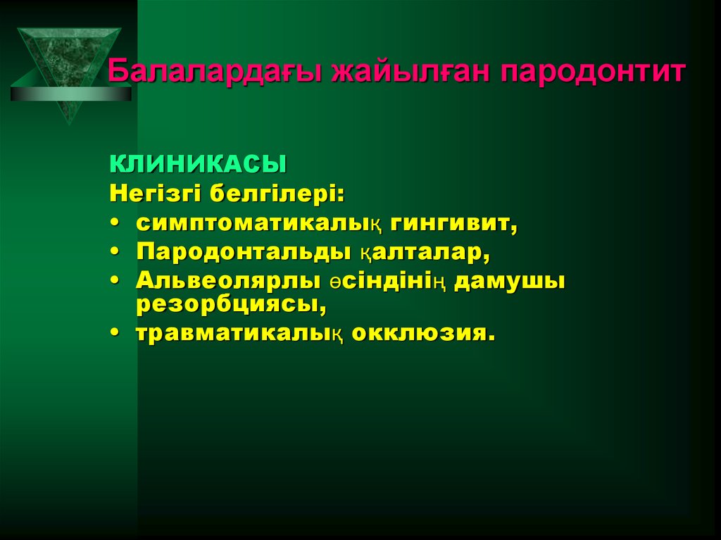 Пубертатты пародонтиттің ерте басталуы нейтрофилдердіңқызметі мен генетикалық тұрғыдағы бұзылыстарға