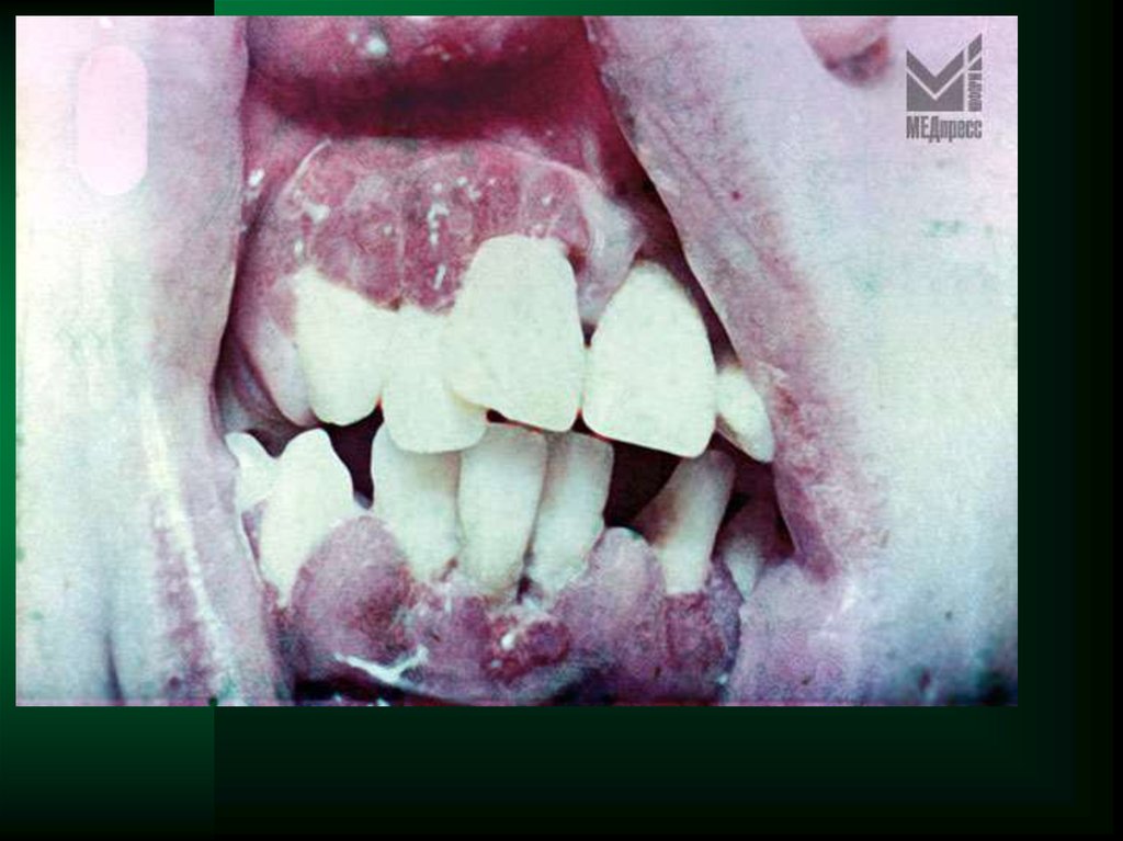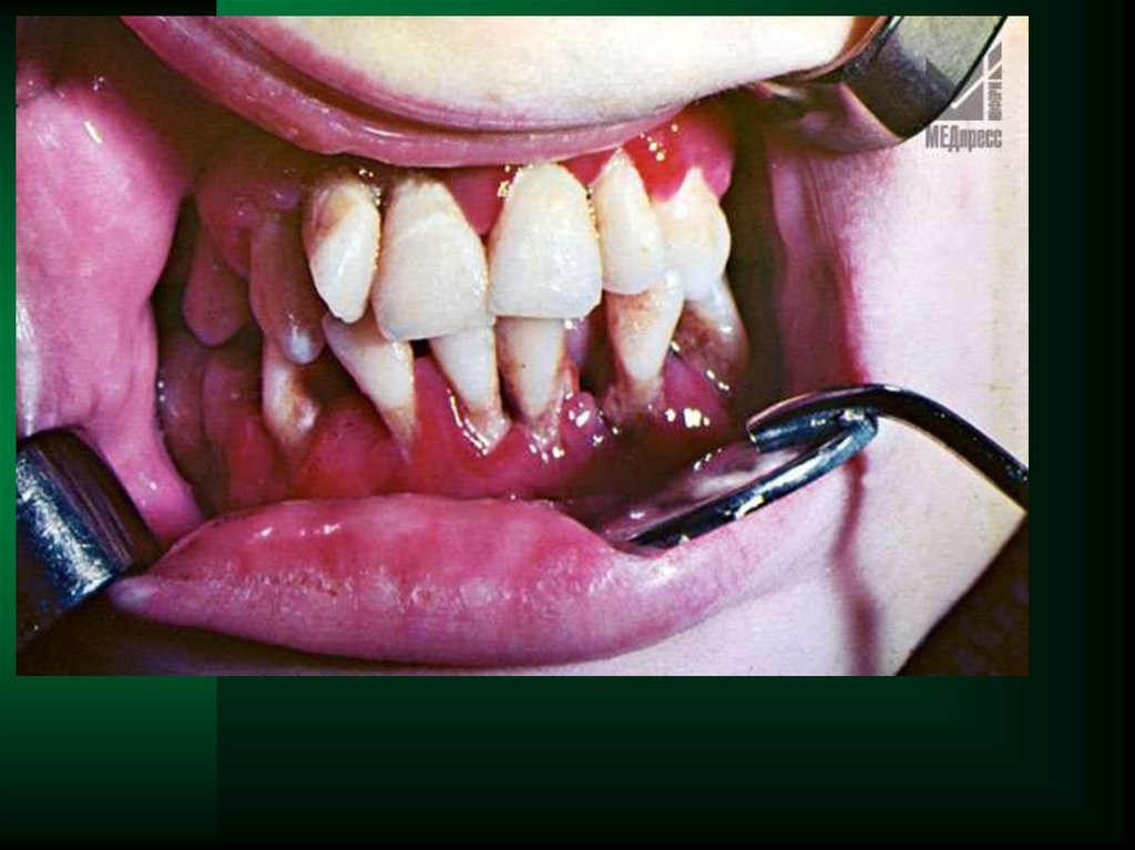 - хронический гипертрофический гингивит в 10-15%