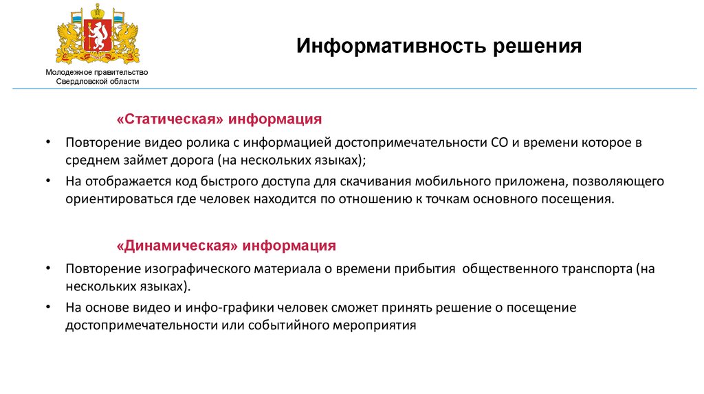• На основе видео и инфо-графики человек сможет принять решение о посещение