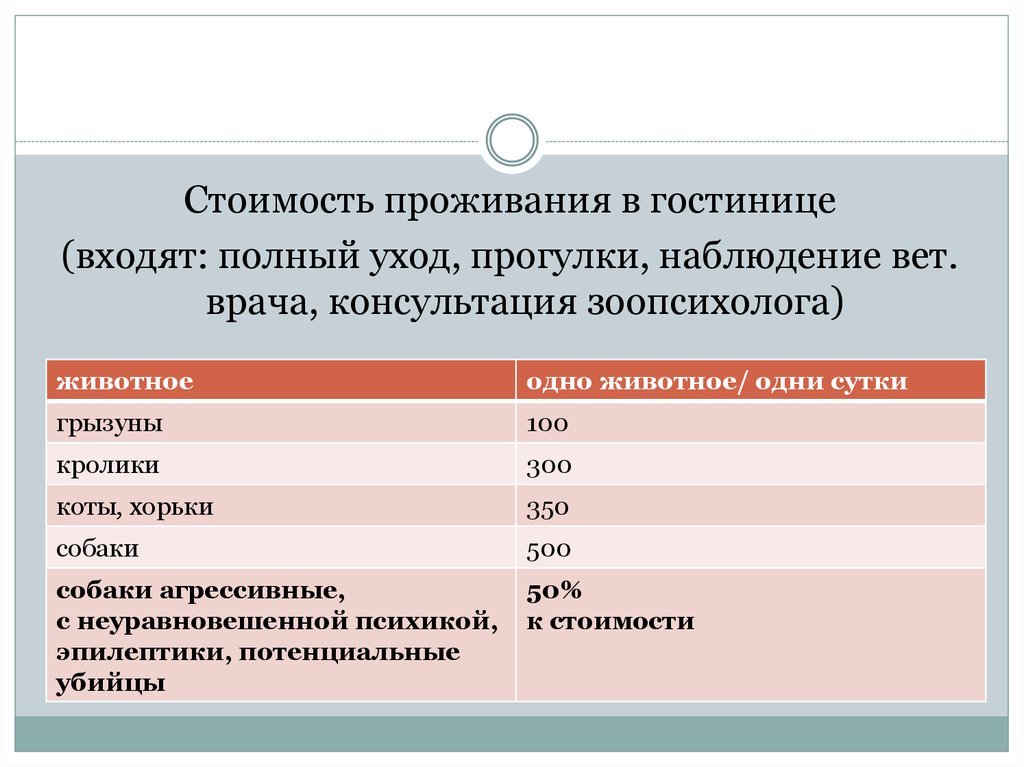 Стоимость проживания в гостинице(входят: полный уход, прогулки, наблюдение вет.