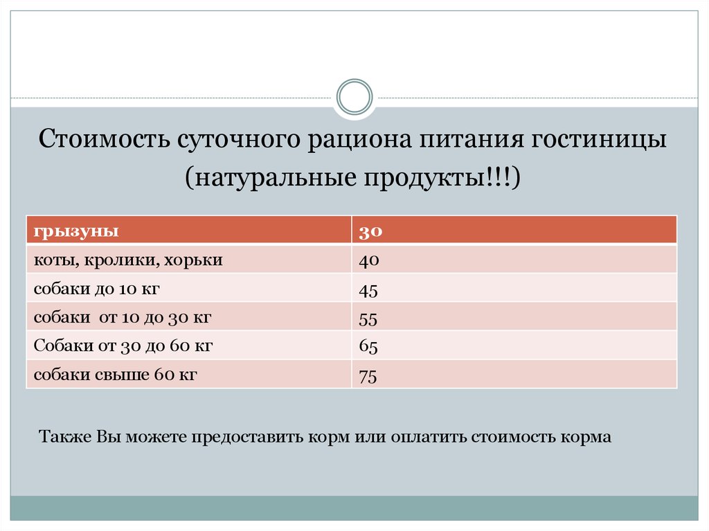 Также Вы можете предоставить корм или оплатить стоимость корма