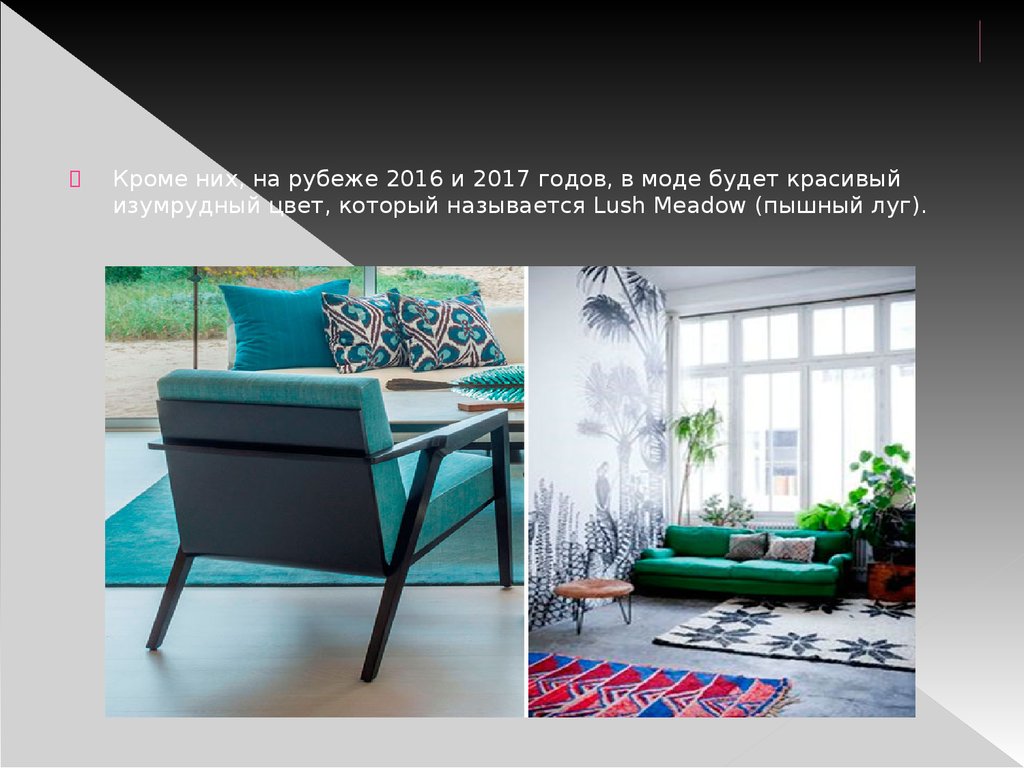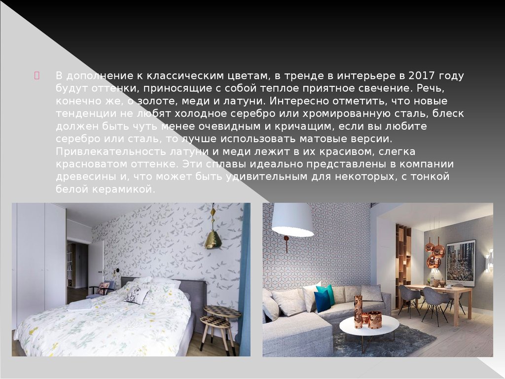 СвВ дополнение к классическим цветам, в тренде в интерьере в 2017 году