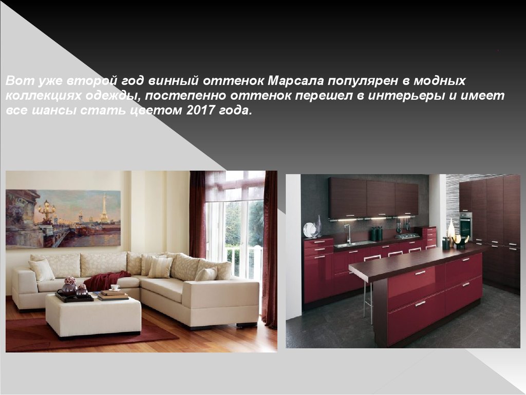 коллекциях одежды, постепенно оттенок перешел в интерьеры и имеет
