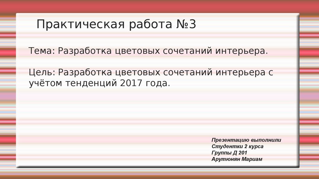 Практическая работа №3Тема: Разработка цветовых сочетаний интерьера.