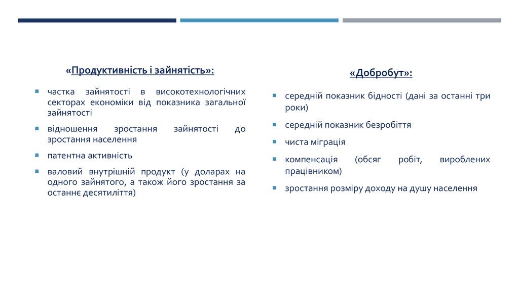«Продуктивність і зайнятість»:«Добробут»:
